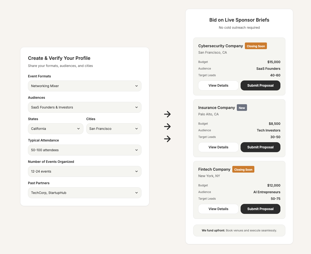 Most organizers start seeing relevant sponsor matches within the first week of listing their event. Once verified, your event is added to our active marketplace and included in sponsor-facing newsletters viewed by hundreds of qualified buyers.